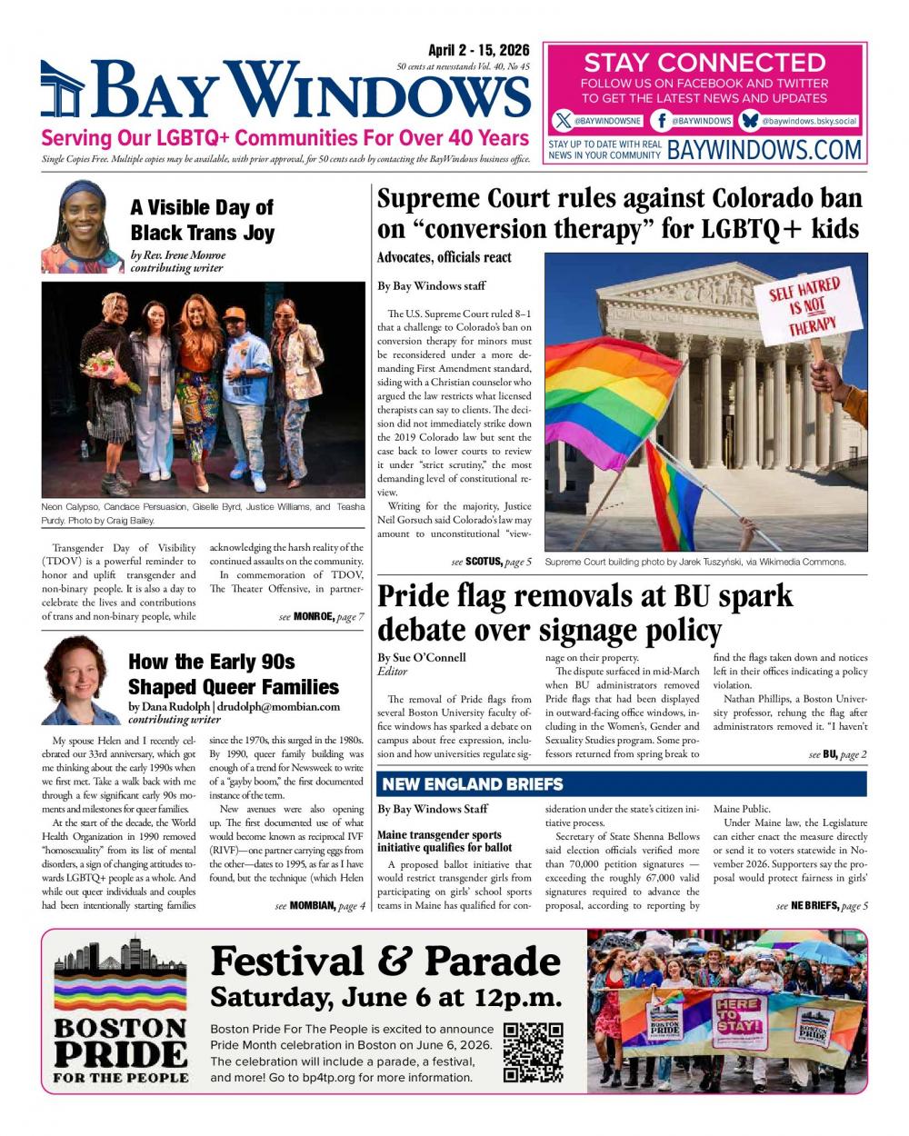 Nominations are now open for two LGBTQ business awards hosted by the Boston Business Journal (BBJ), with a submission deadline of March 27, according to the publication's nomination announcements.