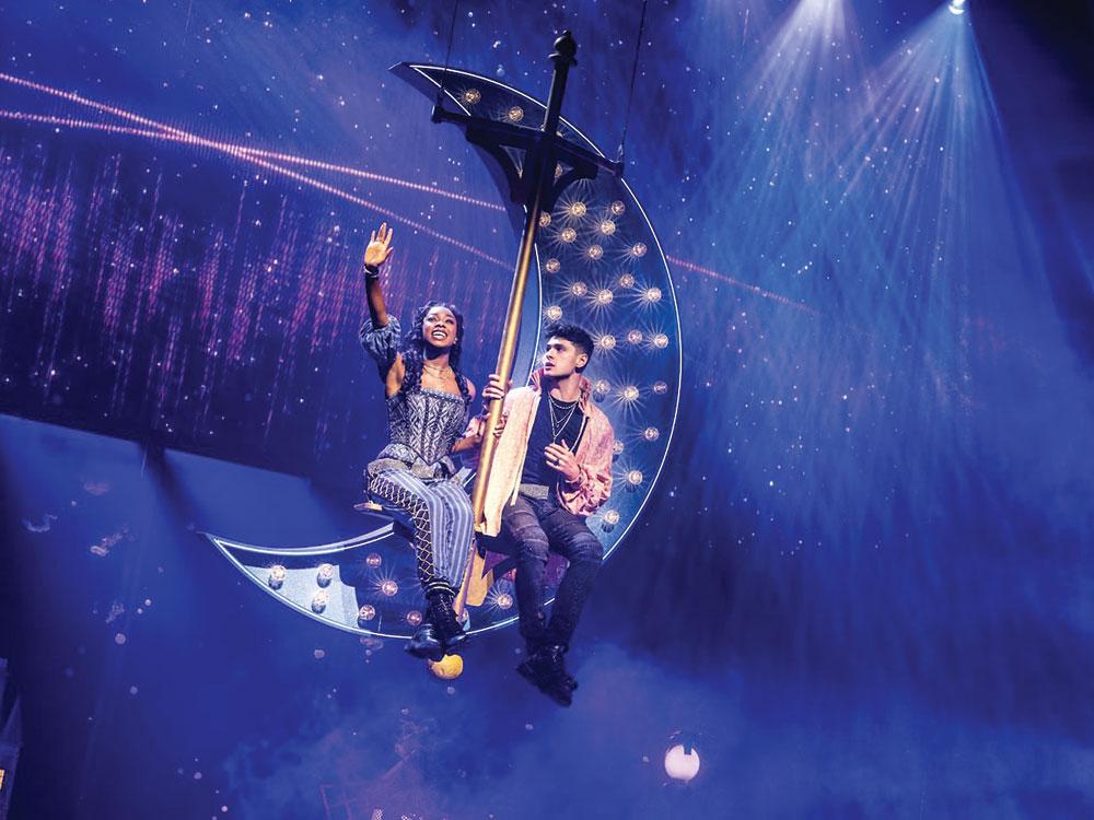 Rachel Simone Webb as Juliet and Michael Canu as Romeo in "& Juliet" at Citizens Opera House. Photo by Matthew Murphy.
